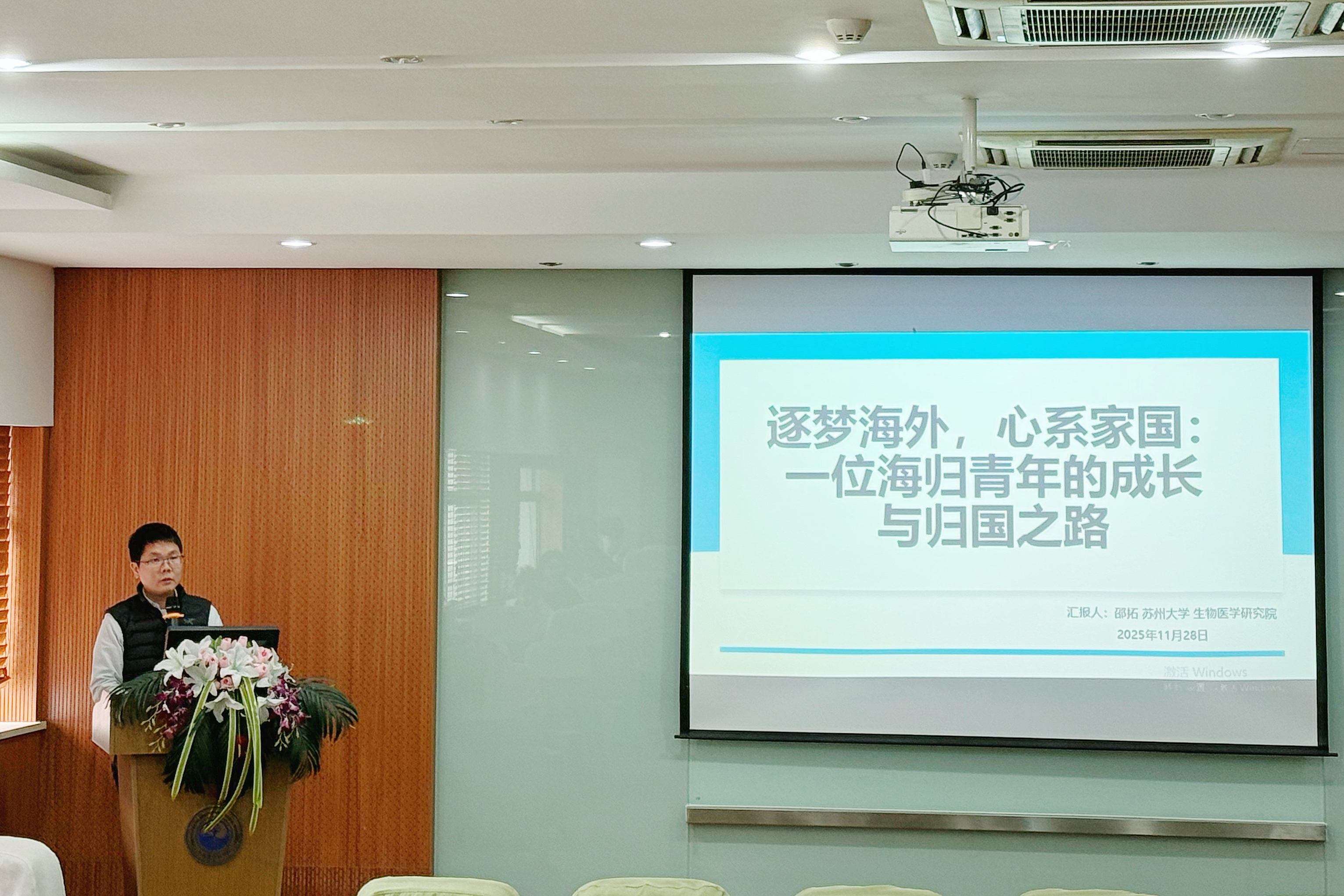 为贯彻落实立德树人根本任务,培养德智体美劳全面发展的社会主义建设者和接班人,帮助2025级新同学更好地适应大学生活,合理规划学业生涯、深化自我认知、坚定理想信念、明确人生目标,11月28日上午10点,生物医学研究院、唐仲英医学研究院举办新生教育系列讲座。讲座邀请了第七届青年海归学者讲师团成员、生物医学研究院特聘教授邵拓老师担任主讲嘉宾。