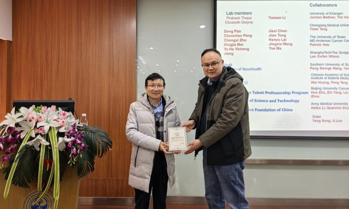 为加强学术交流、把握学科前沿,2026年1月8日,我院特邀同济大学周大鹏教授来院访问,并为师生作了一场题为“肿瘤、感染与自身免疫疾病中的糖蛋白靶标研究进展”的高水平学术讲座。
