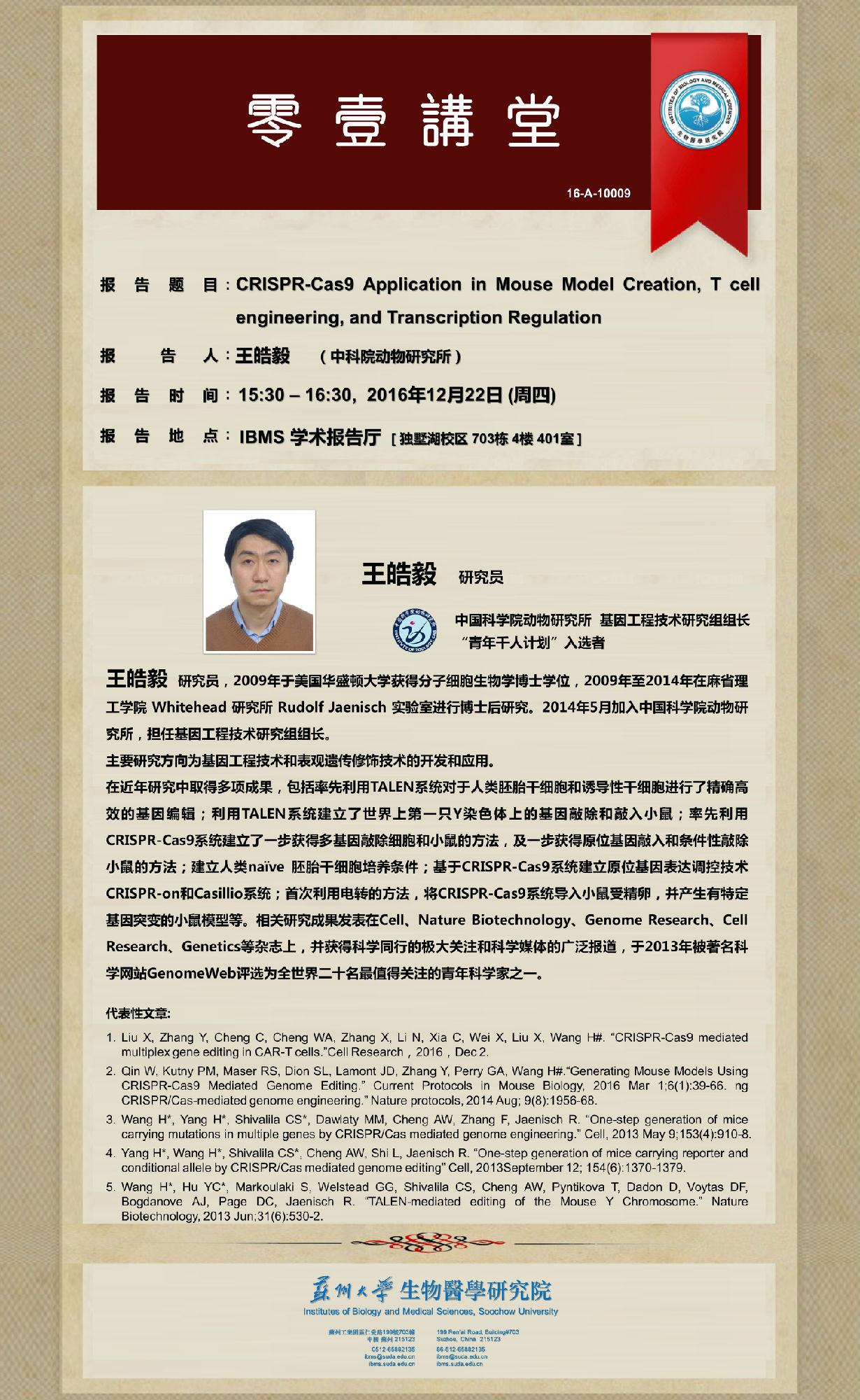 Copyright © 生物医学研究院 江苏省苏州工业园区仁爱路199号 联系电话(传真):+86-512-6588-2135; 电子邮件:ibms@suda.edu.cn