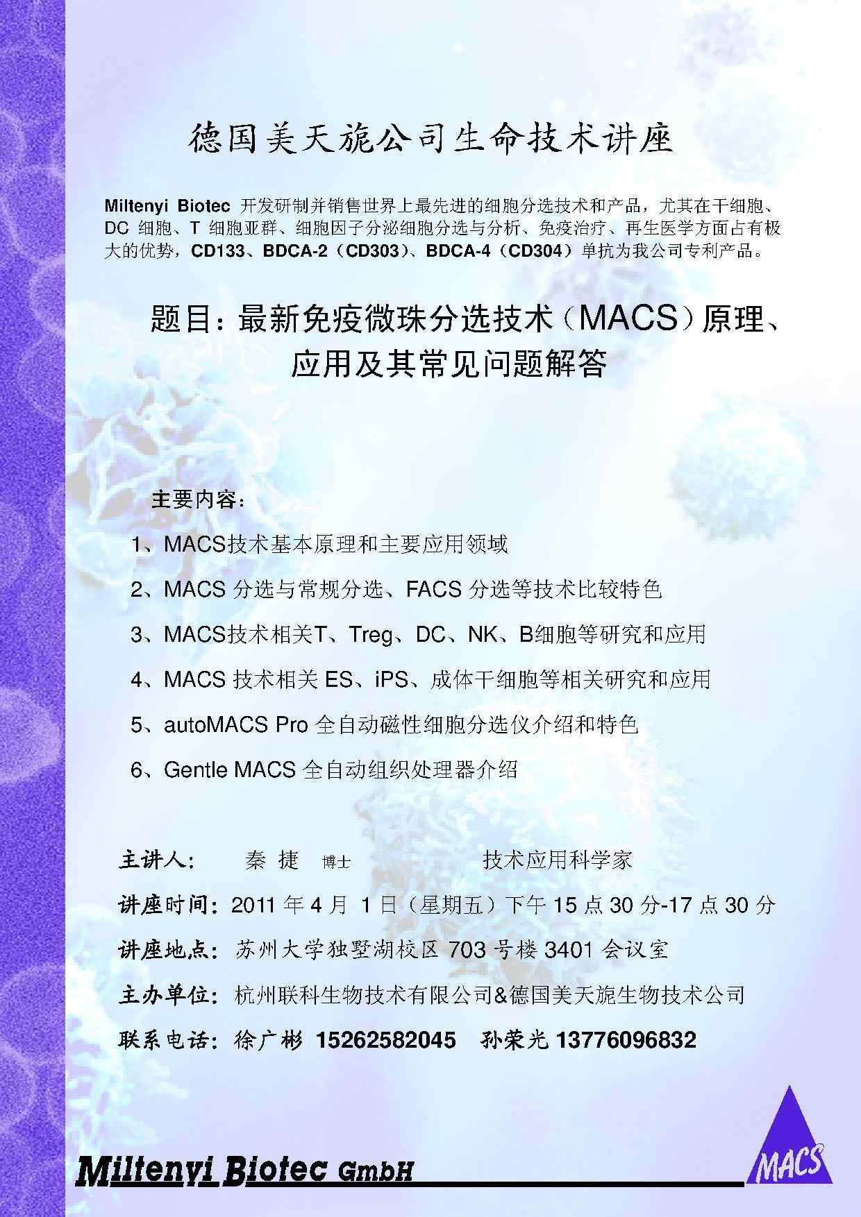 04月01日(15:30-17:30) | 磁珠分选细胞 | MACS | |